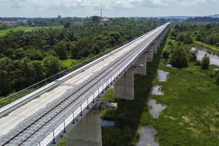 ECRL is an electrified railway in Peninsular Malaysia connecting Kelantan to Selangor. The planned route length was reduced from the original 688.3 km to 640 km, with a design speed of 160 km/h for passenger trains and 80 km/h for freight trains. The project is undertaken by China Communications Construction Company Limited. The railway passes through five states—Kelantan, Terengganu, Pahang, Negeri Sembilan, and Selangor—with a total of 20 stations.
